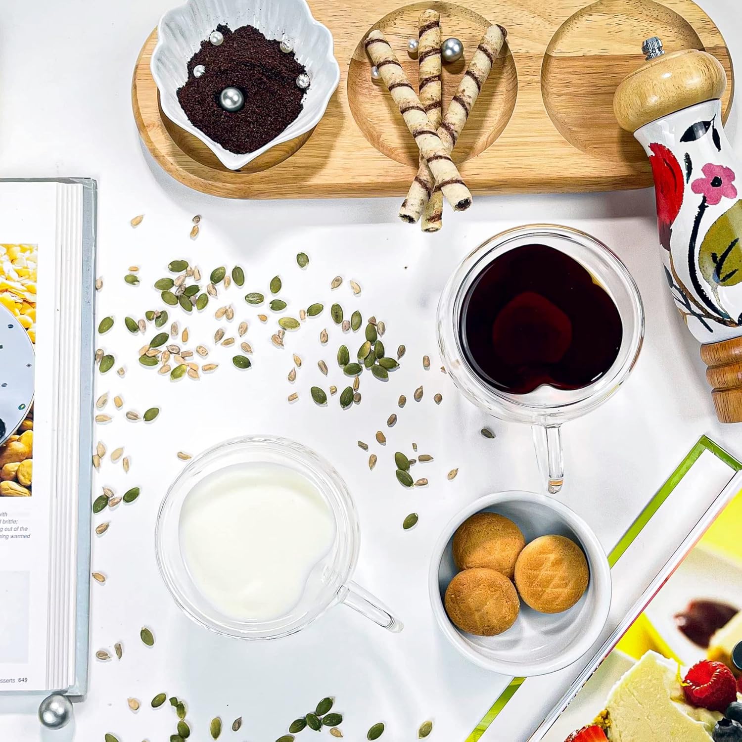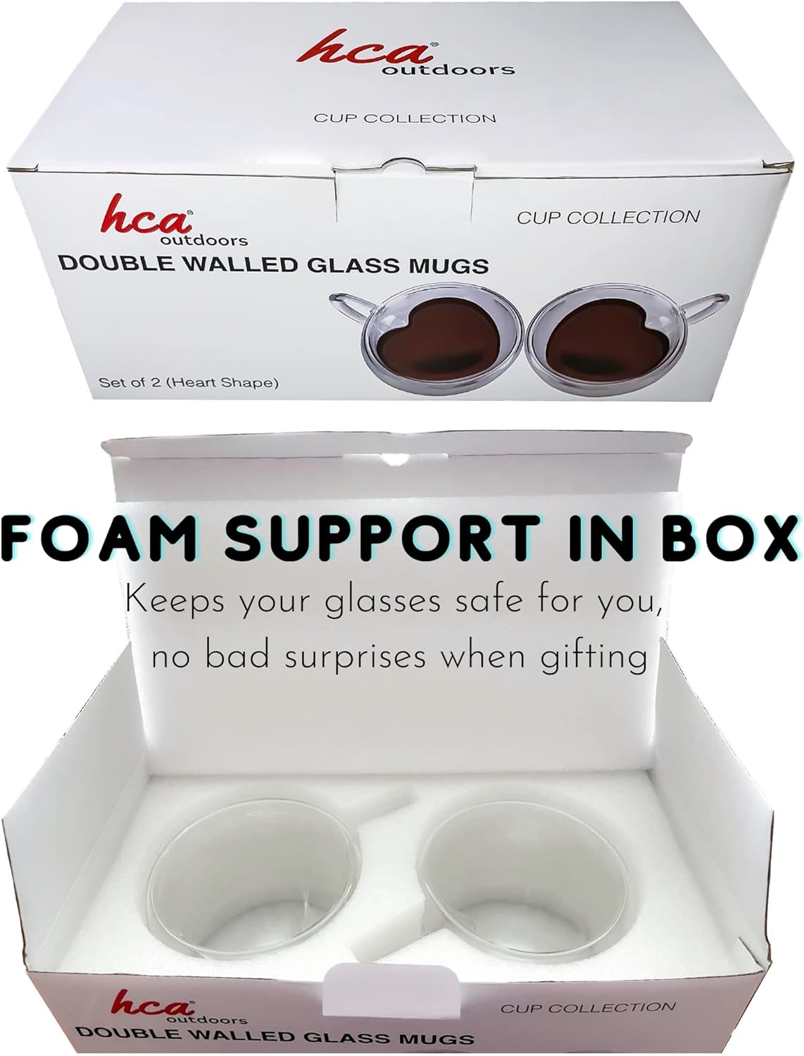 HCA Outdoors Double Walled Glass Coffee Mugs, 8.5oz/250ml Insulated Espresso Cups, Teacup, Clear Glasses Cappuccino Mug (Set of 2) Heart Shaped