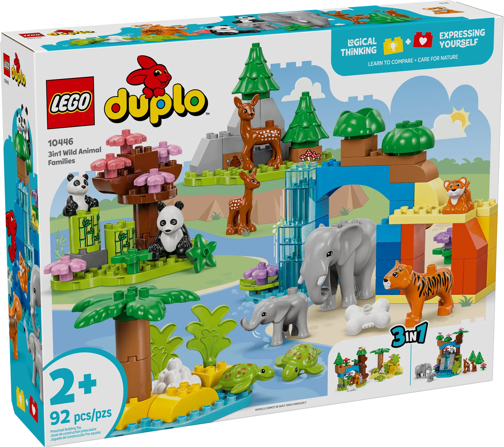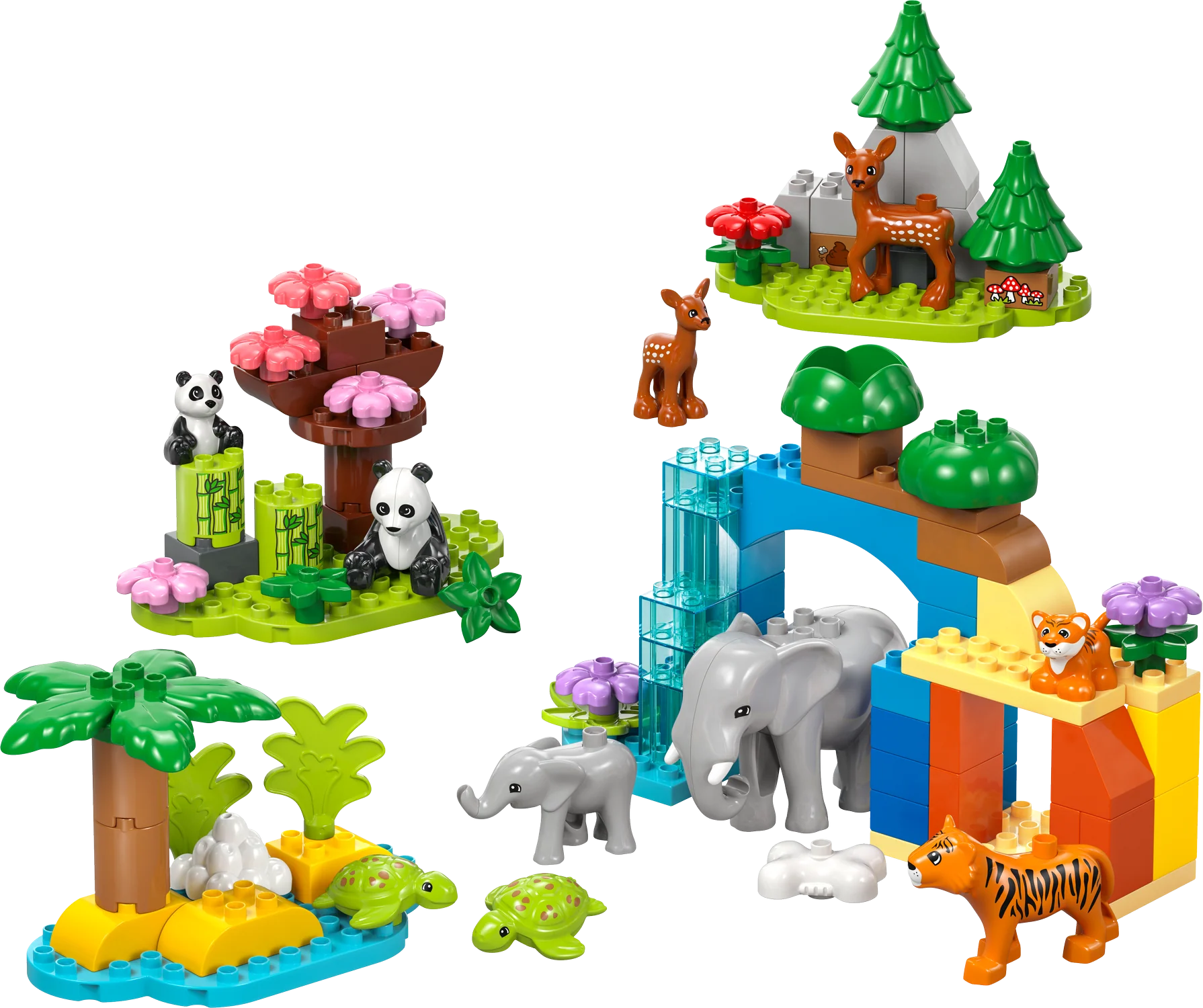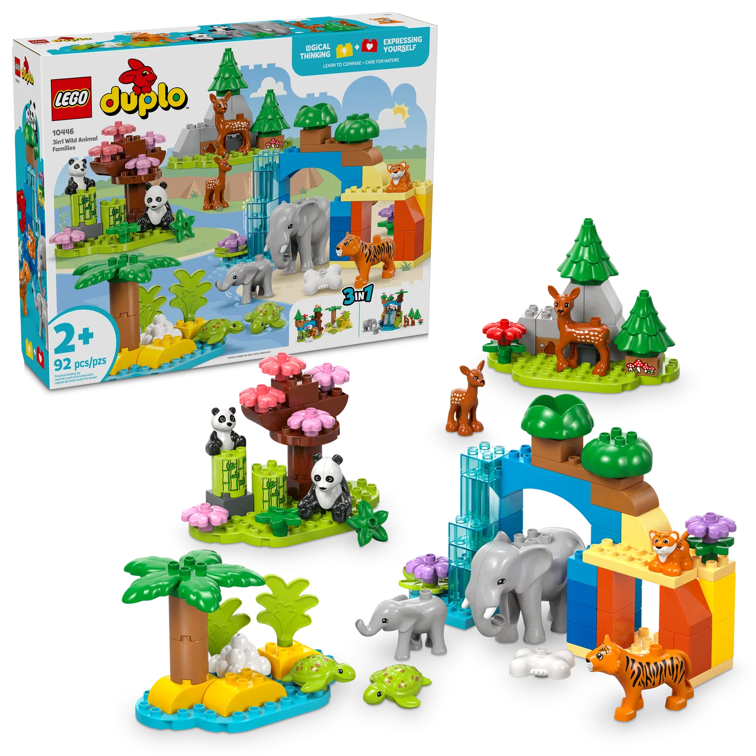 LEGO DUPLO Town 3 in 1 Wild Animal Families Building Toy Playset – Preschool Learning and Educational Animal Toy for Toddlers, Boys and Girls, Ages 2+ – with 10 Animal Figures – Baby Gift Idea About this item EDUCATIONAL TOY FOR KIDS – This playset takes preschoolers on a learning adventure around the world, while teaching little ones developmental skills LEARN ABOUT THE ANIMAL KINGDOM – Toddlers explore where the animal figures live, what they eat and how they care for their young 10 LEGO DUPLO ANIMAL FIGURES – This building set for kids includes tiger, elephant, deer and panda figures, each with a baby, and 2 turtle figures BOOSTS DEVELOPMENT SKILLS – This building set promotes imagination and creativity, teaching, sorting, matching and comparing skills and shows kids how to care for others GIFT FOR TODDLERS – This feature-packed playset makes a great birthday or holiday gift for preschoolers and animal-loving boys and girls ages 2 and up DIMENSIONS – The Savannah scene measures over 7.5 in. (20 cm) high and 13.5 in. (34 cm) wide